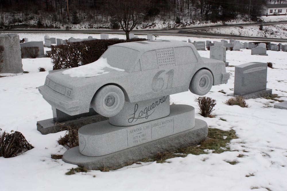 Just outside the township of Barre lies the very unique 65-acre Hope Cemetery. First used as a burial ground in the late 1800’s, it’s famous for its 10,000+ tombstones being carved entirely out of Vermont granite, many of which are the works of post-revolutionary Italian migrants. We crawled slowly along the necropolis laneways marvelling at the efforts surviving family members went to in order to memorialise their deceased loved ones, with designs ranging from a soccer ball to an airplane to a racecar.