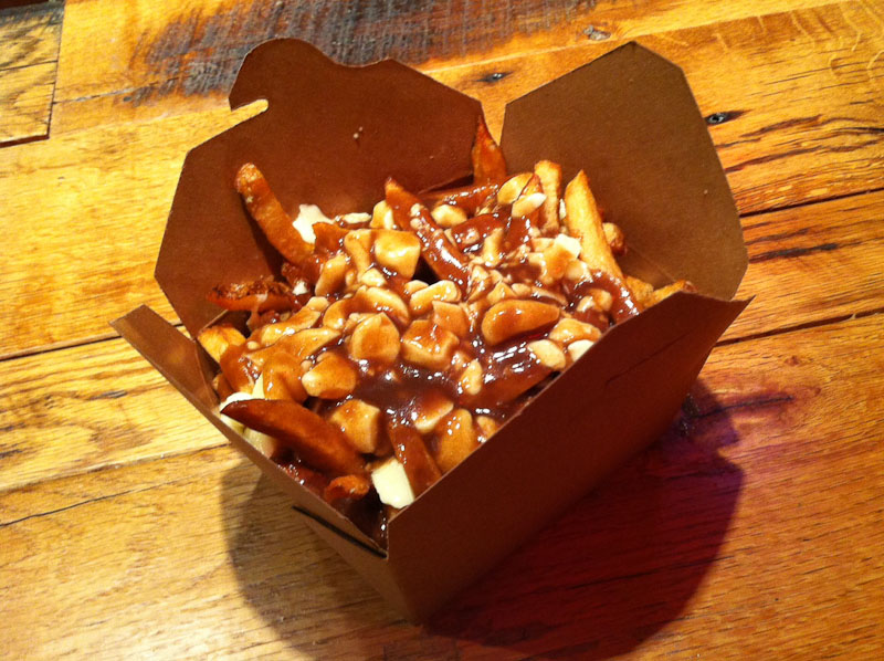 Poutine is an artery-clogging but delicious Canadian dish of hot chips, cheese curds & gravy that I became aware of in the months leading up to my departure from Sydney. For some reason I had the impression it would be more of a specialty menu item, but it turns out it’s massively popular and you can get it anywhere from dive bars to to posh hotels; from street carts to chains such as Smoke’s Poutinerie and Poutini’s who dedicate themselves entirely to said meal.