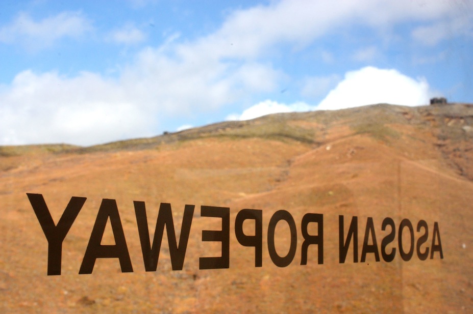 Back at the tourist centre I boarded the Asosan Ropeway and took the 400m ride up to Nakadake crater. I considered saving some money by walking up instead, but I figured it’s not every day you get to glide over the majestic Aso landscape in a windowed cablecar so I opted for the more expensive option. It was worth the ¥.